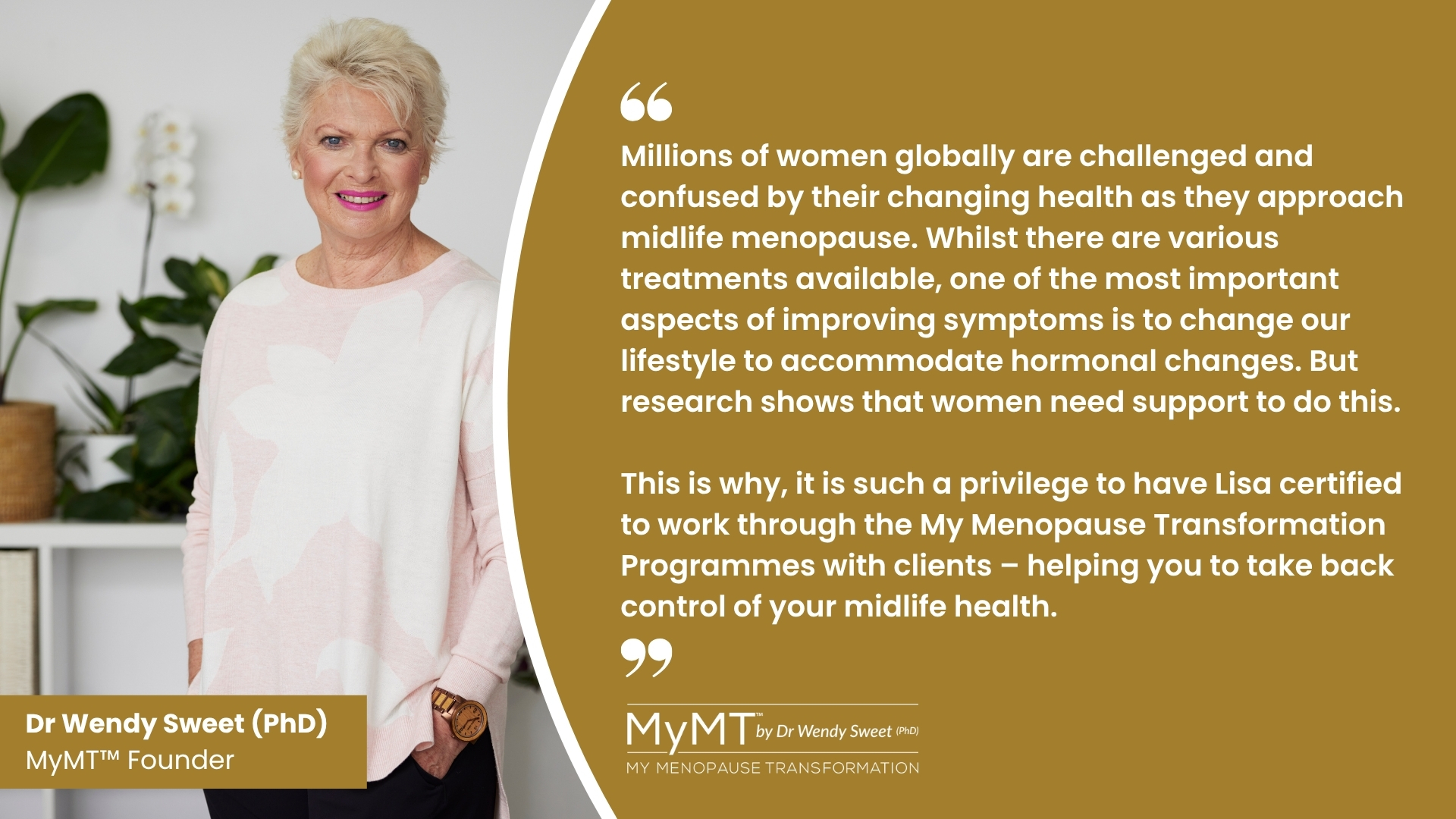 Hi, I'm Lisa. I'm a certified Menopause Lifestyle Coach, Holistic Counsellor, and MyMT™ Affiliate.